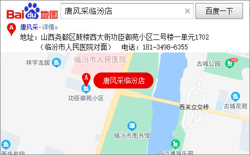 唐風(fēng)采臨汾店,為唐風(fēng)采的模范示范店之一,所有員工均經(jīng)過唐風(fēng)采總部的嚴(yán)格培訓(xùn)上崗,技術(shù)精湛,服務(wù)熱忱。獲廣大客戶朋友的好評(píng)。臨汾店位于山西省堯都區(qū)鼓樓西大街功臣御苑小區(qū)二號(hào)樓一單元1702(臨汾市人民醫(yī)院對(duì)面),地理位置絕佳,交通四通八達(dá).